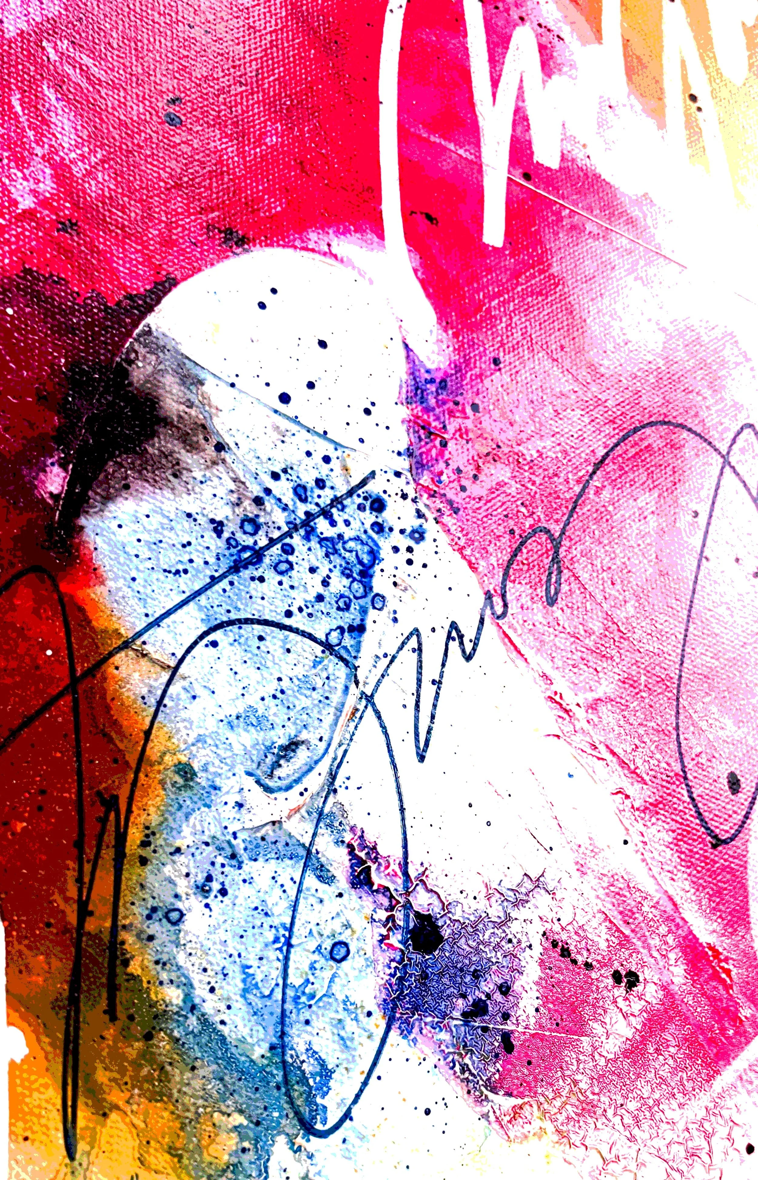 Hanna Bruer is an abstract artist in Madison, WI. Her paintings combine illegible text and grunge textures to create visceral atmospheres. Her work is inspired by her struggles with mental health and the canvas serves as a personal journal to create something beautiful out of adversity.