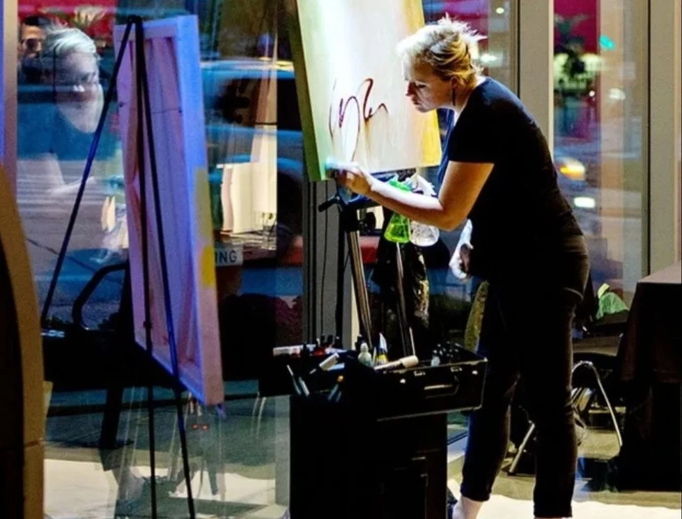 Live painting is an improvisational performance in which a visual artist creates a painting in front of a live audience during the duration of an event. A live painting performance artist creates the artwork from start to finish as a method of entertainment. Unlike purchasing a piece created in the artist's studio, a live painting session includes the whole performance from start to finish. It is a way to engage your guests and create fantastic memories.